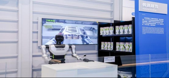 ▲中聯(lián)重科人形機(jī)器人與智慧倉(cāng)儲(chǔ)物流整體解決方案展示