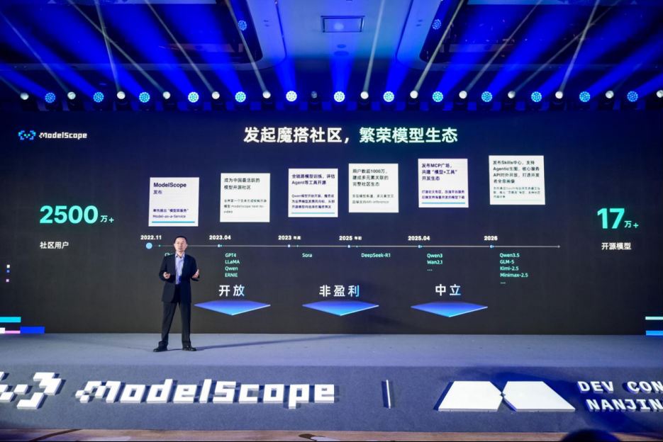 3月22日,智匯金陵· AI開源人才峰會暨魔搭開發者大會在南京舉辦。從去年6月30日至今,魔搭社區用戶數從1600萬增長至2500萬,9個月內用戶增量近千萬;魔搭社區上的開源模型數量從7萬增長至17萬,9個月內新增10萬個開源模型,包括DeepSeek、智譜、MiniMax、階躍星辰、Mistral等國內外前沿模型均在魔搭社區開源。大會期間,魔搭社區正式推出Skills中心,并全面開放核心OpenAPI,讓面向Agentic智能的生態能夠被更好地集成。同時,魔搭社區發布了首份AI開源人才報告,上線了AI開源人才全息畫像。此外,魔搭社區開源發展委員會正式成立,將推動落地具有全球影響力的開源技術標準,加速建設中立、專業、可持續的AI開源生態。