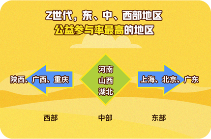東部的上海、北京、廣東,中部的河南、山西、湖北,西部的陜西、廣西、重慶都是Z世代公益參與率較高的省份,同樣也是高校公益組織較為活躍的省份。