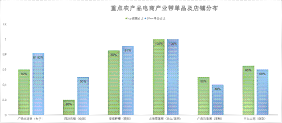 ▲在拼多多平臺上,南寧火龍果、會理石榴、安岳檸檬等在暢銷店鋪占比、10萬+單品占比中名列前茅,并初步形成了產業帶集群。