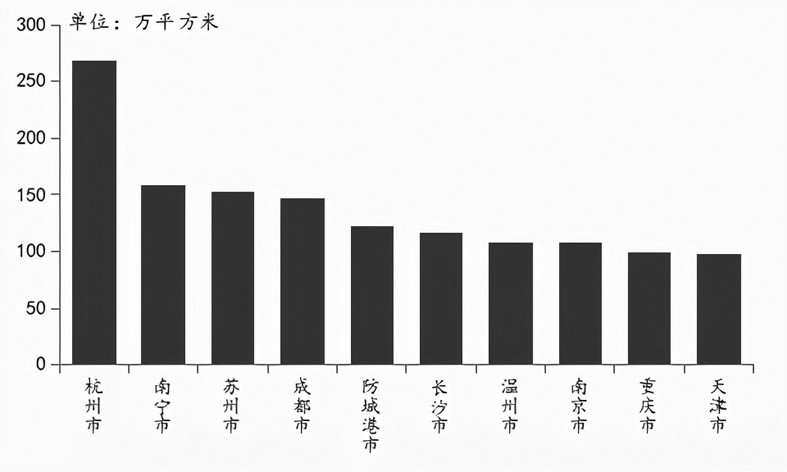 報告顯示,一線城市占比有所下降,城市群中長三角熱度略有下降。從布局城市等級來看,50家代表房企2021年1-3月在二線城市和三四線城市的投資面積占比依舊基本持平,分別為48.2%和47.2%,但一線城市占比有小幅下降。從布局區域來看,企業依舊熱衷于在長三角拿地,占比為36.2%,但相較1-2月,該占比有所下降?;浉郯拇鬄硡^次之,占比為7.8%,長江中游和成渝城市群占比分別達7.0%和6.9%,比例變化不大。房企杭州拿地規模持續擴大,拿地城市區域較為分散。2021年1-3月,50家代表房企拿地面積TOP10城市中,杭州繼續以累計優勢占據首位。TOP10城市中,區域較為分散,除杭州、蘇州、溫州和南京為長三角城市外,其余6城市涉及成渝、中西部、京津冀等多個城市群。