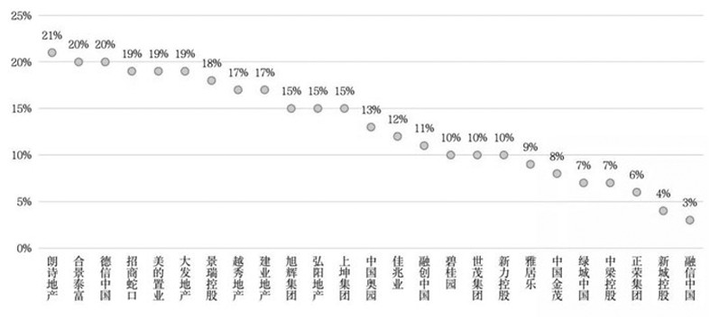 部分典型房企2021年銷售目標較去年業績漲幅(單位:%)