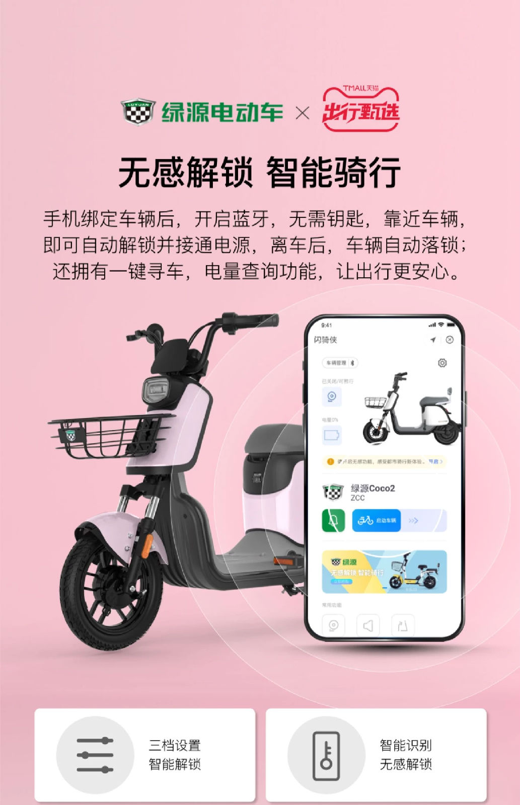 6月16日,阿里云AIoT聯合綠源電動車打造的輕智能電動車COCO2正式在天貓商城“綠源旗艦店”售賣,不僅能讓用戶實現手機即鑰匙,還可以手機同步查詢車輛精準電量等全新騎行體驗。同時,阿里云AIoT研發的“千里尋跡”電動車商家管理平臺同步上線,綠源作為第一批入駐商家,可以在此平臺快速創建智能電動車產品模型,遠程管理智能電動車狀態,掌控智能電動車從工廠到端的每一個環節的數據。