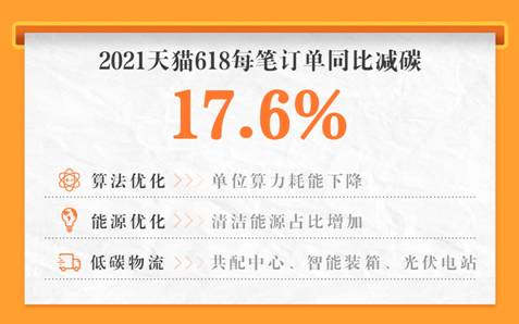 6月18日,天貓宣布:今年618期間,淘寶天貓上每筆訂單的碳排放量同比去年下降了17.6%。