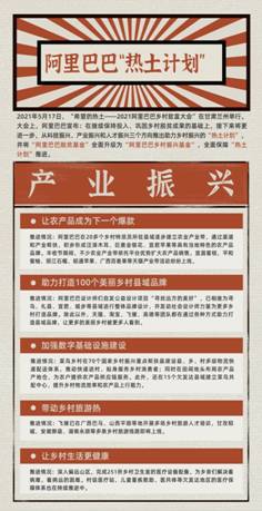 在今年5月17日的“鄉(xiāng)村振興大會”上, 阿里巴巴推出助力鄉(xiāng)村振興的“熱土計劃”,并表示將“以扎扎實實的投入,為鄉(xiāng)村帶去實實在在的幫助”。在此次公布的“工作進度匯報”中,“熱土計劃”各項目標(biāo)如期推進,阿里巴巴的產(chǎn)業(yè)優(yōu)勢、科技優(yōu)勢與鄉(xiāng)村發(fā)展實際的結(jié)合更加緊密。