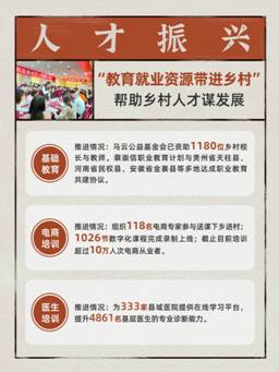 在人才振興領(lǐng)域,在過去四個月里,阿里再增加資助了1180位鄉(xiāng)村校長與教師,把教育就業(yè)資源帶進鄉(xiāng)村,同時組織了118名電商專家送課下鄉(xiāng),錄制完成1026節(jié)數(shù)字化課程,培訓(xùn)電商從業(yè)者超10萬人次;培訓(xùn)鄉(xiāng)村醫(yī)生近5萬人次,覆蓋了333家縣級醫(yī)院。