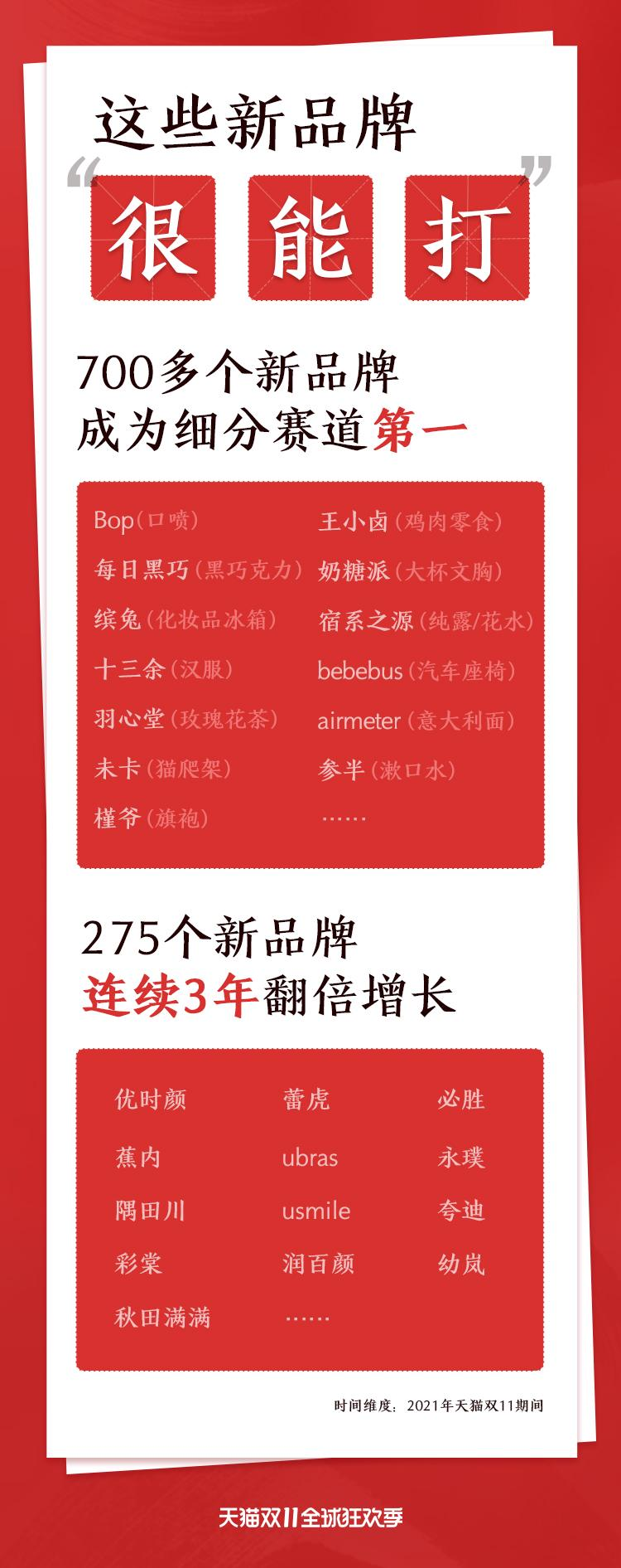 天貓雙11觀察:700多個新品牌“很能打”,成為細分賽道第一
