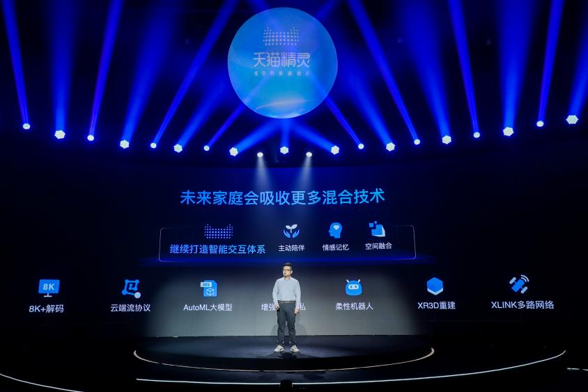 (圖:阿里巴巴集團副總裁、天貓精靈總裁彭超介紹未來技術混合趨勢)
