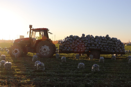 ▲農用拖拉機拖著剛剛拔出來的濰坊蘿卜從落日余暉里穿過。李云豐|攝