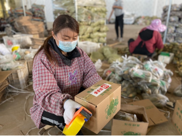 劉大姐在劉鳳珍這里打包已有四五年。平日種地,空閑就來掙點閑錢日常開銷。熟練工一天可以打包500件,日結工資達兩三百元。和劉大姐一樣閑不住,利用空閑時間在周圈打零工兼顧家里的大姐還有很多。她們拼工作拼生活,雖然辛苦,但臉上滿是笑容。