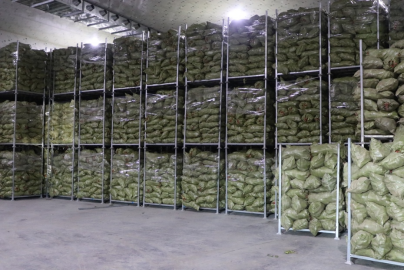 ▲倉庫里的蘿卜碼放的整整齊齊,等待被分裝后運往全國各地。李云豐|攝
