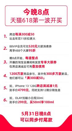 5月31日晚8點,天貓618第一波正式開買,消費者不用熬夜,拆快遞的快樂也會提前。