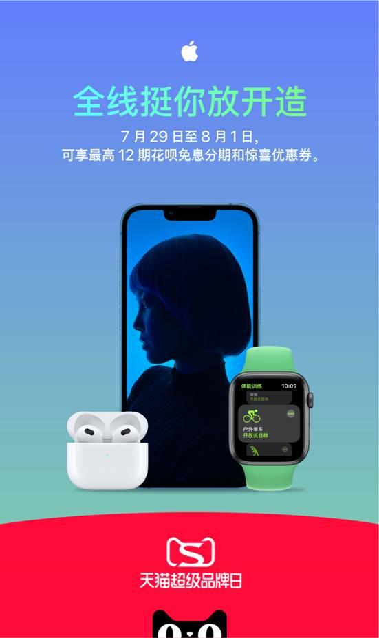夏天屬于歡樂、活力與探索新奇。7 月 29 日至 8 月 1 日,Apple 多線產品首次參與天貓超級品牌日,以“全線挺你放開造”為主題,為消費者帶來一場夏日狂歡。