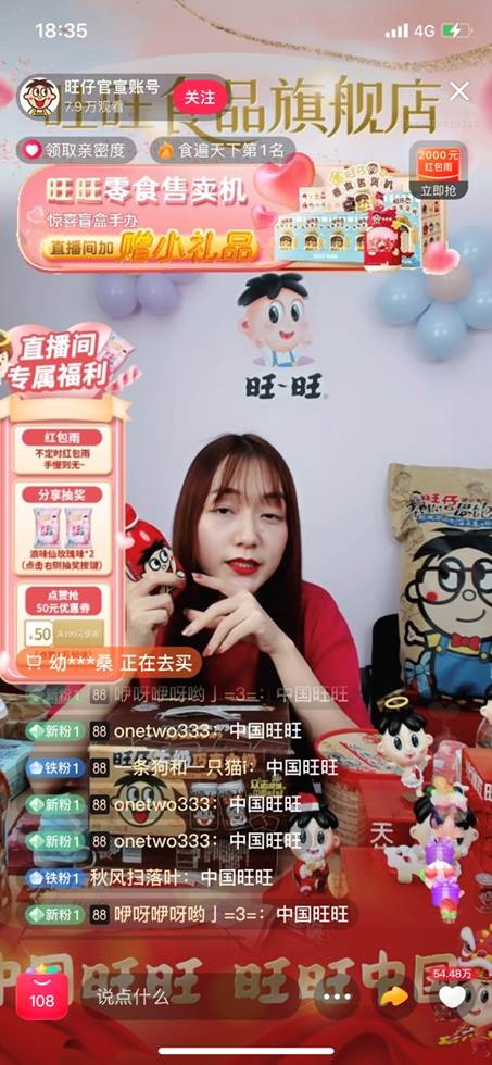 網友在直播間里接龍“中國旺旺”,支持旺旺食品愛國態度
