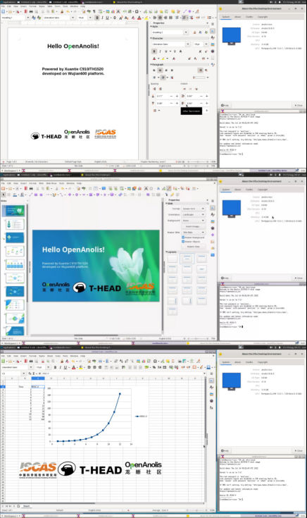 在無劍600平臺上,平頭哥與龍蜥社區、中科院軟件所PLCT實驗室進行了軟硬件全棧的聯合優化,完成了RISC-V與龍蜥操作系統的3000多個基礎包適配,并在曳影1520上首次運行FireFox瀏覽器、LibreOffice等大型桌面級軟件,以及Hexo和Open Rocket等基于NodeJS和JAVA的應用,極大拓展了RISC-V的想象力。