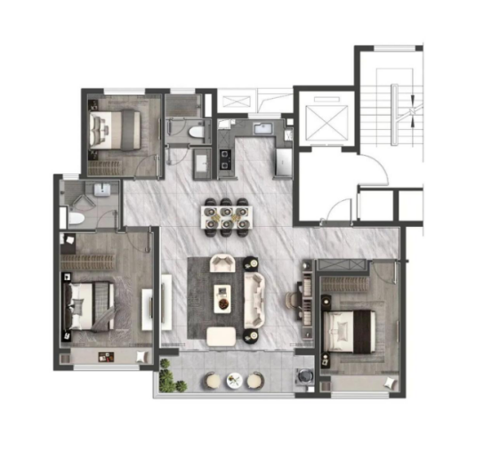 龍湖·央頌主力戶型為建面約128㎡的三房兩衛、約150㎡的四房兩衛。只有兩種改善戶型,確保了社區圈層的統一性。