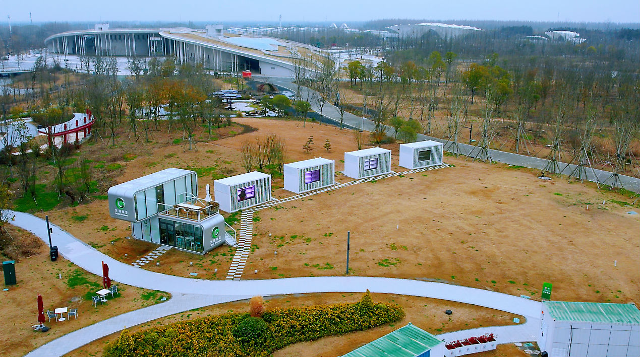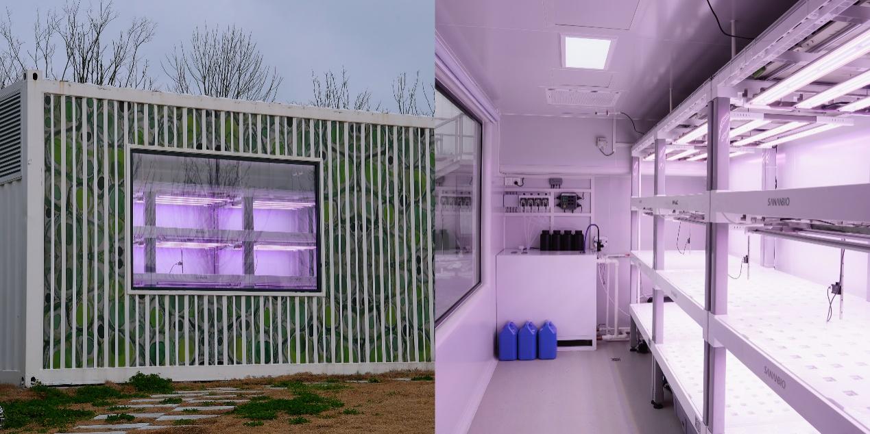 ▲ 圖為此次比賽使用的集裝箱垂直農(nóng)場及內(nèi)部基礎(chǔ)配套設(shè)施??斩箌攝