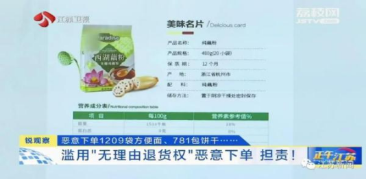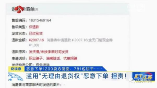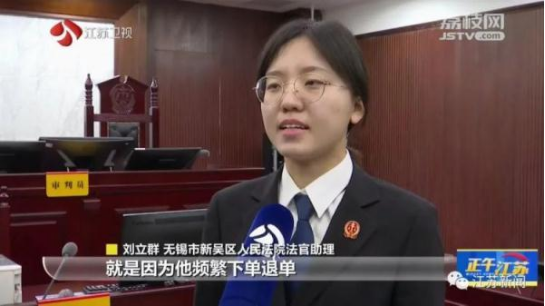 無錫市新吳區人民法院法官助理劉立群介紹:“當時王某下單的時間在2022年10月份,接近‘雙十一’大活動。商家也陳述說,就是因為他頻繁下單退單,致使商家評分不高,導致商家沒有參與‘雙十一’活動,日銷售額遭受很大影響,商譽也有影響。”