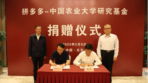 5月9日,“拼多多-中國農業大學研究基金”捐贈儀式在中國農業大學國際會議中心舉行。“拼多多-中國農業大學研究基金”是由拼多多公司向中國農業大學捐贈1億元人民幣設立,旨在支持中國農業大學圍繞國家重大戰略需求,立足全球農業領域相關學科前沿,在基礎研究和農業卡脖子技術攻關方面進行積極探索。