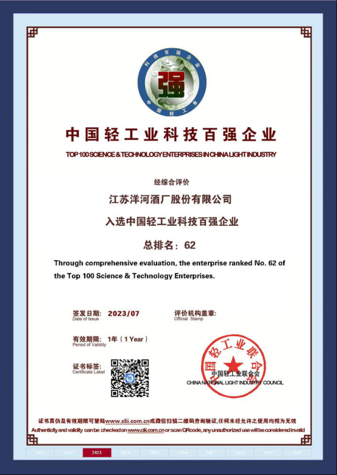 “中國輕工業二百強企業”在行業中具有極高權威性和廣泛影響力,是衡量中國輕工業企業發展活力的重要標準。洋河股份憑借持續的科技創新、研發高投入以及高端專業人才引入,再一次獲得中國輕工聯的高度認可。