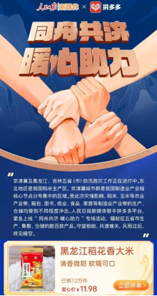 此后,為幫助受災地區(qū)商家減少損失,拼多多相繼推出了“加油涿州”圖書專場活動與“同舟共濟 暖心助力”幫扶專場活動,號召全國網(wǎng)友拼一單。通過在活動專場內(nèi)設置“加油河北”“加油東北”與“加油京津冀”等專區(qū),重點推介各地區(qū)的產(chǎn)業(yè)帶好物,并給予流量傾斜,幫助受災地區(qū)商家減輕因水災帶來的生產(chǎn)和倉儲損失,加速復工復產(chǎn)。