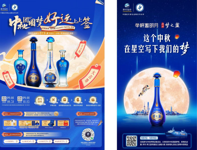 線上,洋河“中秋團圓夢 好運上上簽”活動中,各式獎品既接地氣又實用;“這個中秋,在星空寫下我們的夢”夢想征集活動,攜手“洋河·夢之藍號”捷龍三運載火箭發(fā)射郵輪觀禮之旅重磅來襲……通過數(shù)字化中秋回饋活動,“洋河”與消費者之間形成一個連通器,連接千家萬戶,與消費者共話團圓夢想。