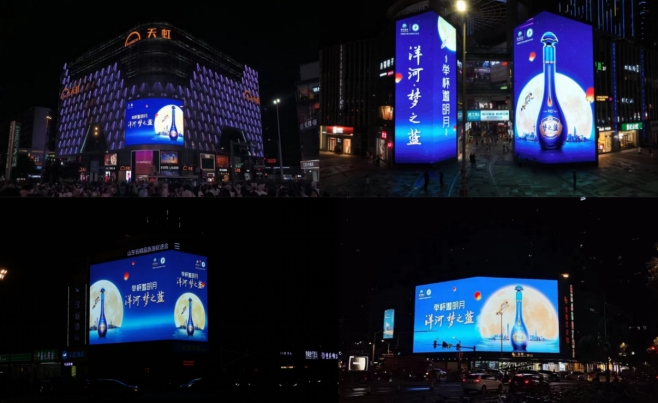 線上功夫做足,洋河還在線下營造出濃厚的過節(jié)氛圍,在全國各大城市的核心商圈、網(wǎng)紅地標建筑,“洋河·夢之藍”用“舉杯邀明月”中秋主題海報為紐帶,給消費者帶來直擊心靈的鼓舞和慰藉,用“高端”“高品質”“高品位”的形象價值為中秋增添節(jié)日氛圍,在與消費者的多維度互動中,拉滿消費者品質體驗。
