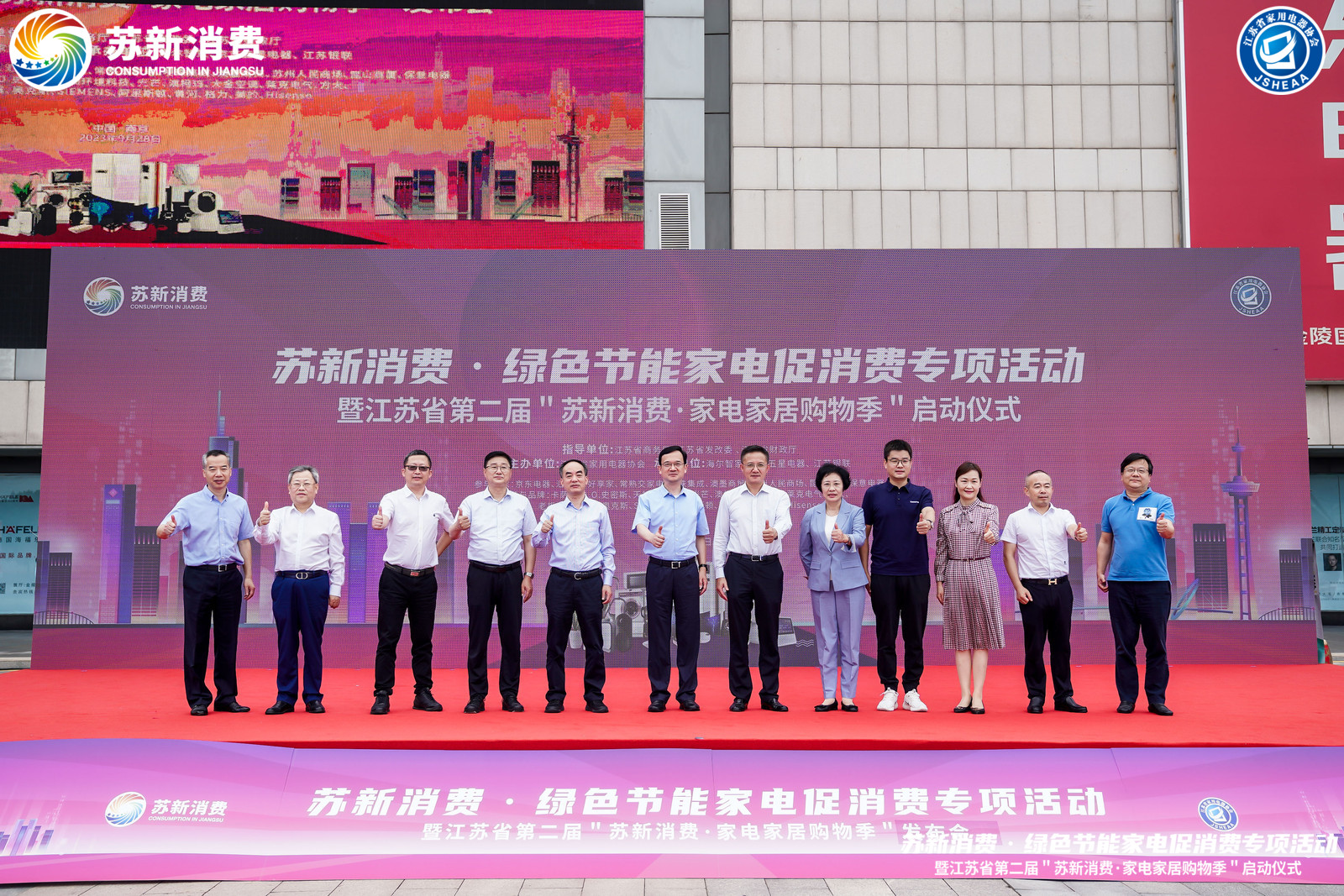 2023年是國家商務部確立的”消費提振年”,是中國經濟的復蘇之年,為深入貫徹國家發改委恢復和擴大消費二十條措施,按照省委省政府的總體安排,江蘇省商務廳、江蘇省發改委和江蘇省財政廳把本次專項活動落到實處,組織開展了“蘇新消費?綠色節能家電促銷費專項活動“,9月28日,“蘇新消費?綠色節能家電專項補貼”系列活動發布儀式在建鄴區萬達廣場隆重舉行,此次活動由江蘇省商務廳、江蘇省發改委 、江蘇省財政廳指導,江蘇省家用電器協會主辦,海爾智家、京東五星電器、江蘇銀聯、蘇寧易購、文峰電器等重點家電、家裝企業聯合參與,在秋季家裝旺季為消費者提供全場景家電家裝產品優惠,刺激消費市場。
