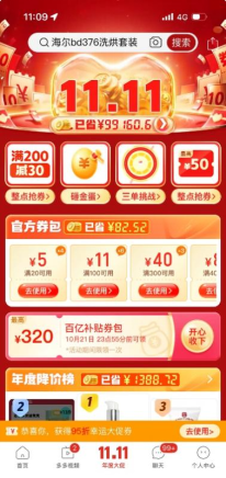 ▲10月20日,拼多多11.11來臨,消費者打開拼多多app即可直達大促會場。