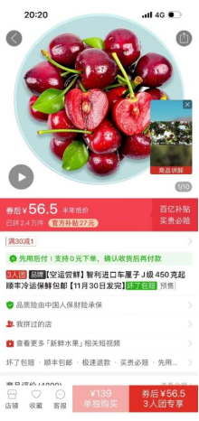 當下,智利車厘子正迎來上新季,首批進口的智利車厘子也將在大促期間登陸拼多多百億補貼。目前,百億補貼已經上線了智利車厘子的首發預售,450g裝J級車厘子補貼價僅為56.5元,也是全網最具折扣力度的嘗鮮價。