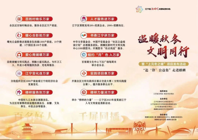 11月20日,由江寧區(qū)委宣傳部、區(qū)文明辦、區(qū)新時(shí)代文明實(shí)踐中心主辦,麒麟街道新時(shí)代文明實(shí)踐所承辦的“溫暖秋冬 文明同行”暨“上元冬之暖”項(xiàng)目發(fā)布活動(dòng)——“追‘鋒’公益集”走進(jìn)麒麟街道。活動(dòng)以“溫暖秋冬”為主題,持續(xù)唱響文明實(shí)踐“四季歌”,促進(jìn)服務(wù)群眾“零距離”。