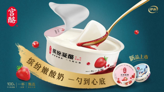 作為新增長點的酸奶,帶來了新一代暢輕利樂冠——暢輕谷物爆珠系列,創新性的產品口味,Q彈的谷物爆珠,帶給消費者更加極致的口感體驗;宮酪持續引領凝固市場創新升級,布局極致美味分層嫩酸奶。