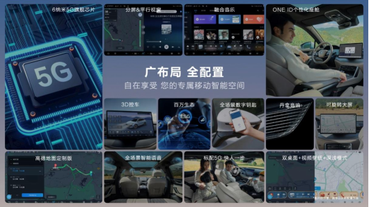 智艙方面,漢唐榮耀版全面升級智能座艙高階版-DiLink 100,基于D 100(6nm)芯片,攜手國際芯片巨頭深度定制了支持5G的車用級座艙平臺,高算力芯片性能優(yōu)于行業(yè)主流,打造出了一個“更智能、更高效、更人性”的無限暢享智能座艙。