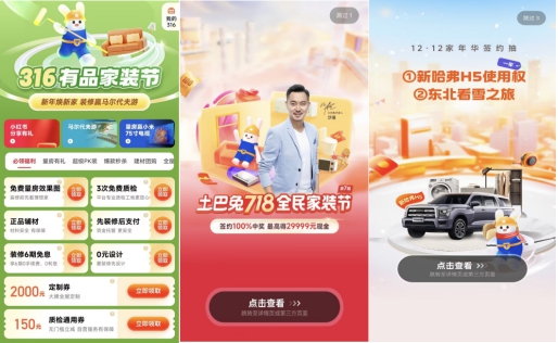 可以說,土巴兔通過多年的持續打造,已將316有品家裝節、718全民家裝節和12·12裝修家年華打造成為三大家裝大促IP。而316有品家裝節作為家裝開年盛宴,已與其它IP大促構成犄角之勢,為裝修用戶提供全方位的裝修服務。