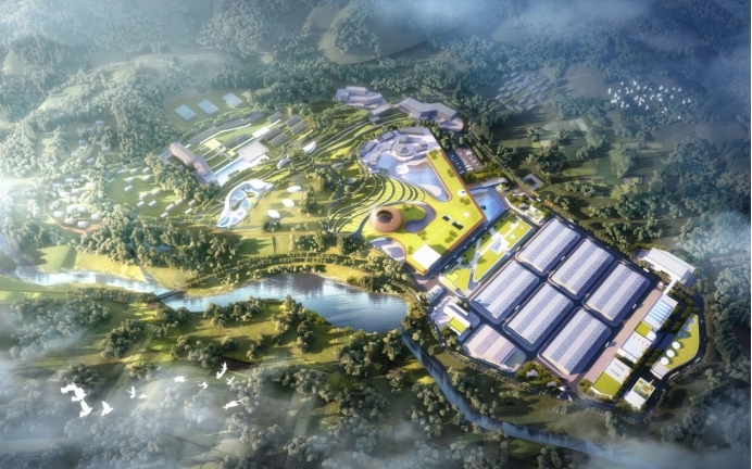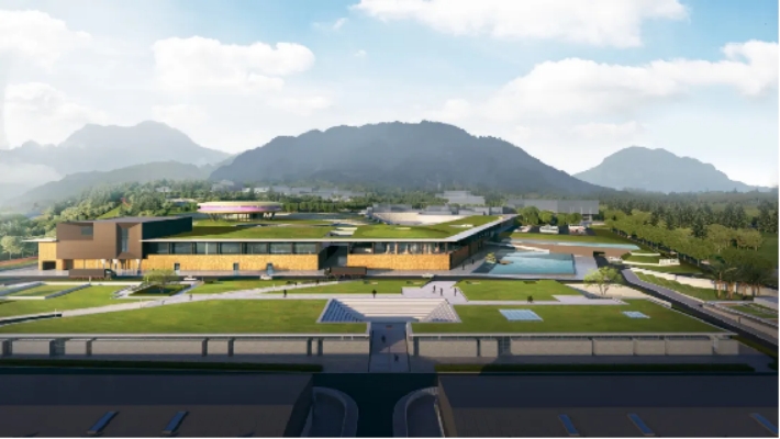 遵循敬畏自然的理念,項目整體規劃為綿延起伏的覆土式建筑,與峨眉山融為一體,最終打造“消失的工廠”般的藝術建筑群。