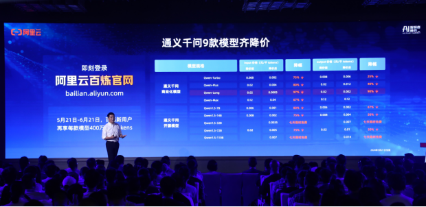 在武漢AI智領者峰會現場,阿里云智能集團資深副總裁、公共云事業部總裁劉偉光表示:“作為中國第一大云計算公司,阿里云這次大幅降低大模型推理價格,就是希望加速AI應用的爆發。我們預計未來大模型API的調用量會有成千上萬倍的增長。”