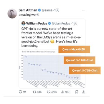 不久前,OpenAI的Sam Altman轉發了Chatbot Arena榜單來印證GPT-4o的能力,其中全球排名前20的模型中,僅有的三款中國模型都是通義千問出品。