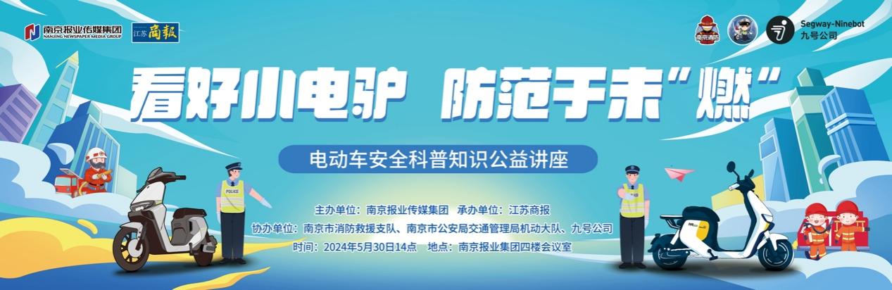 5月30日,“電動車安全科普知識公益講座”在南京報(bào)業(yè)傳媒集團(tuán)大廈舉行。本次講座由南京報(bào)業(yè)傳媒集團(tuán)主辦、《江蘇商報(bào)》承辦,邀請了南京消防救援隊(duì)、南京交警大隊(duì)及智能電動自行車行業(yè)領(lǐng)跑者——九號公司的專業(yè)人員進(jìn)行培訓(xùn),共同為市民解讀電動自行車安全使用的重要性,并普及如何確保電動自行車使用安全。