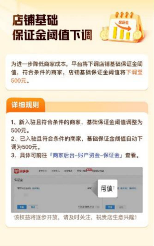 ▲9月5日,拼多多宣布將下調店鋪保證金,進一步降低商家經營成本。
