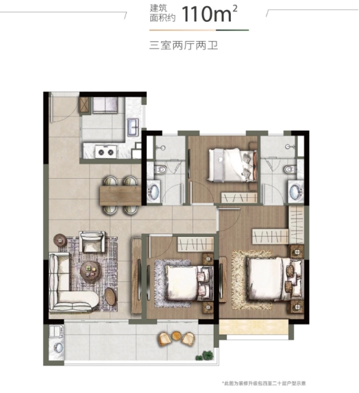 長(zhǎng)江悅府建面約110㎡爆款戶型