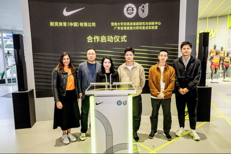 今年的耐克進(jìn)博會(huì)展區(qū),展出了一系列耐克與中國(guó)田徑事業(yè)40余年共發(fā)展的榮耀時(shí)刻。中國(guó)著名田徑運(yùn)動(dòng)員蘇炳添親臨現(xiàn)場(chǎng),并與耐克共同宣布,雙方將進(jìn)一步深化多年來的伙伴關(guān)系,開啟競(jìng)技體育領(lǐng)域的全新合作。耐克將依托其在運(yùn)動(dòng)科學(xué)領(lǐng)域的深入研究、頂尖科技和創(chuàng)新優(yōu)勢(shì),攜手“暨南大學(xué)蘇炳添速度研究與訓(xùn)練中心”,在田徑運(yùn)動(dòng)前沿科技研發(fā)、人才培養(yǎng)、青少年田徑運(yùn)動(dòng)推廣公益事業(yè)、田徑賽事組織等方面展開共建共享,助力本土“速度”研究和訓(xùn)練,提升中國(guó)田徑水平。同時(shí),耐克也將與暨南大學(xué)的“廣東省速度能力研究重點(diǎn)實(shí)驗(yàn)室”展開長(zhǎng)期合作,從田徑科普、運(yùn)動(dòng)科學(xué)研究等多個(gè)領(lǐng)域,形成聯(lián)動(dòng)效應(yīng)。