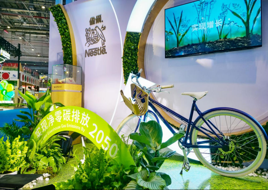 在本屆進博會中,可持續(xù)發(fā)展理念貫穿雀巢展區(qū)的每一個角落,成為一大亮點?!皟袅闾寂欧怕肪€圖”再次展示了雀巢堅定的可持續(xù)發(fā)展目標與路徑。此外,雀巢秉持“創(chuàng)造共享價值”的理念,將綠色創(chuàng)新融入產(chǎn)品的全生命周期,從原料采購到消費者手中,構建了一條可持續(xù)的綠色價值鏈。