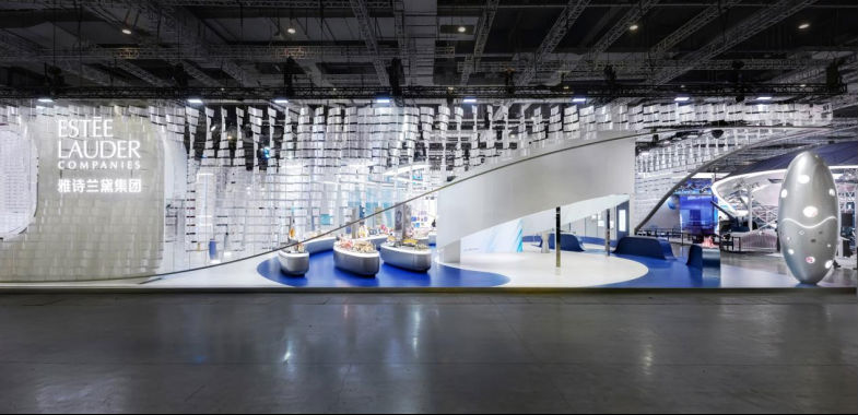 今年進(jìn)博會(huì)的雅詩(shī)蘭黛集團(tuán)展館內(nèi),流動(dòng)線條營(yíng)造視覺(jué)延伸感,為參觀者提供體驗(yàn)產(chǎn)品、科技的精致空間,著力呈現(xiàn)高端美妝和科技盛宴。