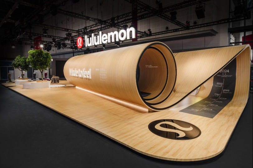 lululemon“進博會首秀”的展臺以正在展開的瑜伽墊為造型,設計靈感源自品牌創立的起源:瑜伽