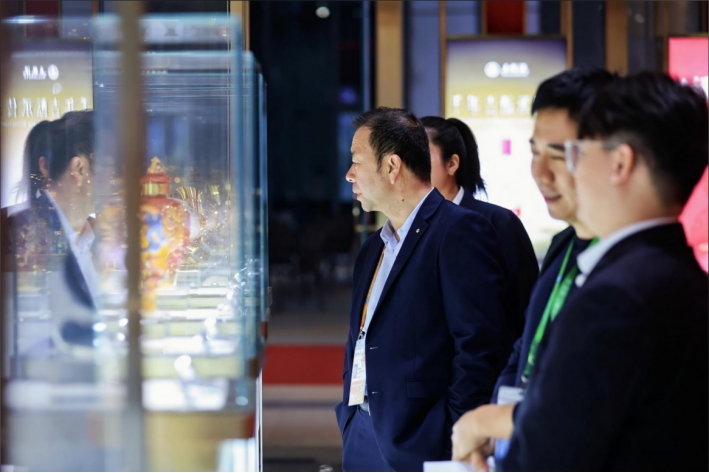由經典五糧液10、20、30、50組成的經典系列產品展示櫥窗,以五糧液獨有的五糧元素為設計靈感,將五糧精髓融入現代展示藝術之中。值得一提的是,五糧液與進博會攜手煥新升級的聯名文創——“五福進寶”,也亮相本屆進博會,吸引展廳內外眾多消費者競相拍照留念。