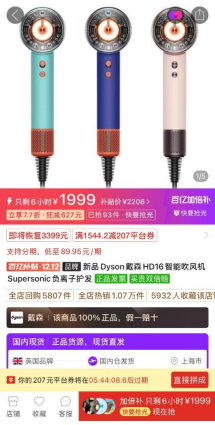 ▲上線“超級加倍補”的戴森HD16 吹風機,價格直降1000元至1999元。
