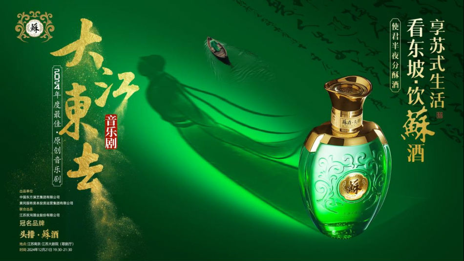 作為音樂劇《大江東去》的聯合出品方和劇目巡演的冠名方,頭排·蘇酒與東方演藝集團的再次牽手,既是在傳承與守護中華傳統文化這一時代命題下,對蘇酒品牌內核中的文化價值進行的一次深度解讀與提煉,更是一次蘇酒品牌與中國文化的自信交融。