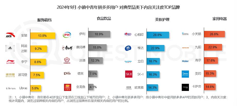 ▲小鎮中青年在拼多多平臺的各類目關注TOP品牌