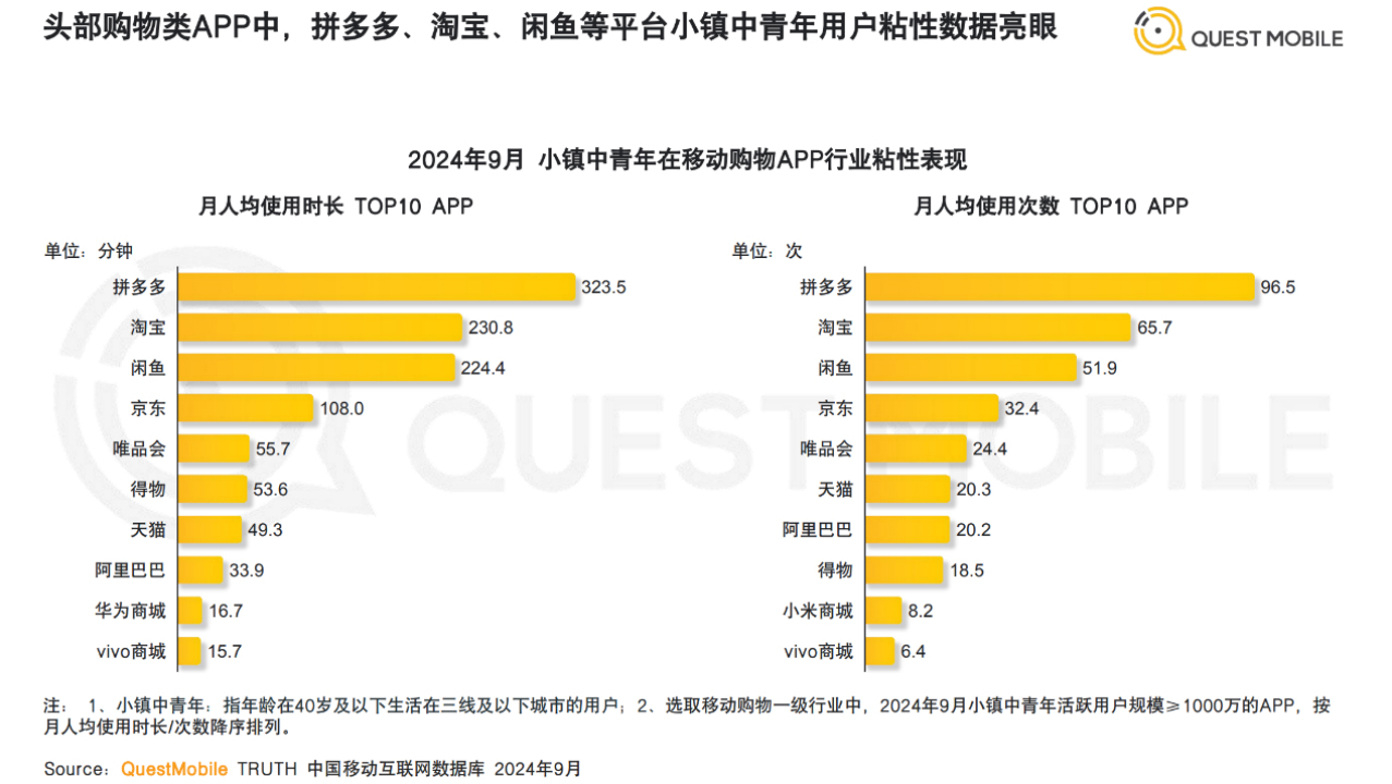 拼多多平臺小鎮中青年用戶粘性數據亮眼(來自報告)