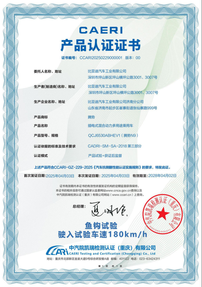 180km/h極限通關(guān) 騰勢(shì)N9獲得全球魚(yú)鉤測(cè)試最高速認(rèn)證